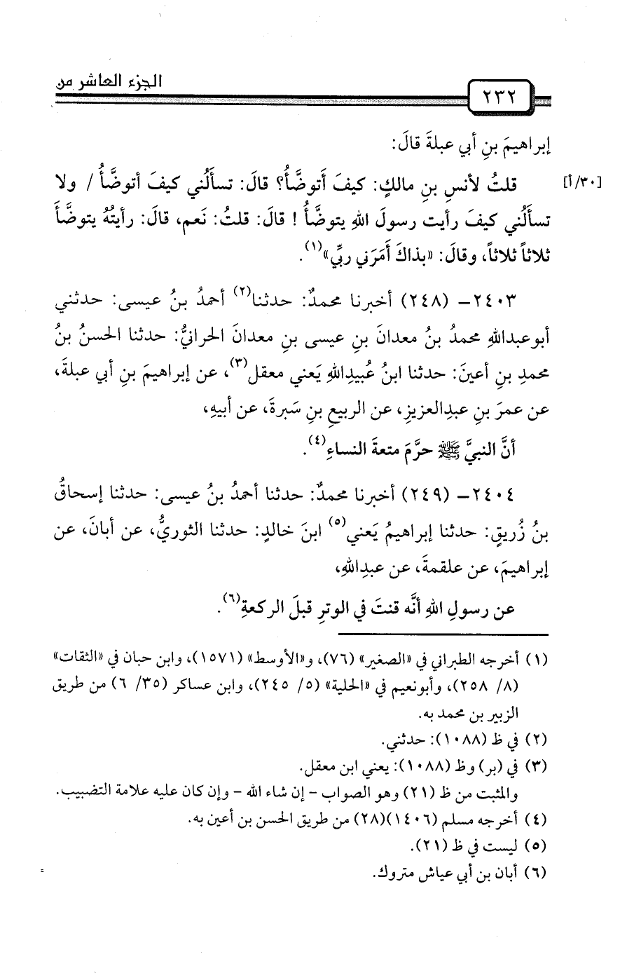 2404- (249) أخبرنا محمدٌ: حدثنا أحمدُ بنُ عيسى: حدثنا إسحاقُ بنُ زُريقٍ: حدثنا إبراهيمُ يَعني (¬5) ابنَ خالدٍ: حدثنا الثوريُّ، عن أبانَ، عن إبراهيمَ، عن علقمةَ، عن عبدِاللهِ،