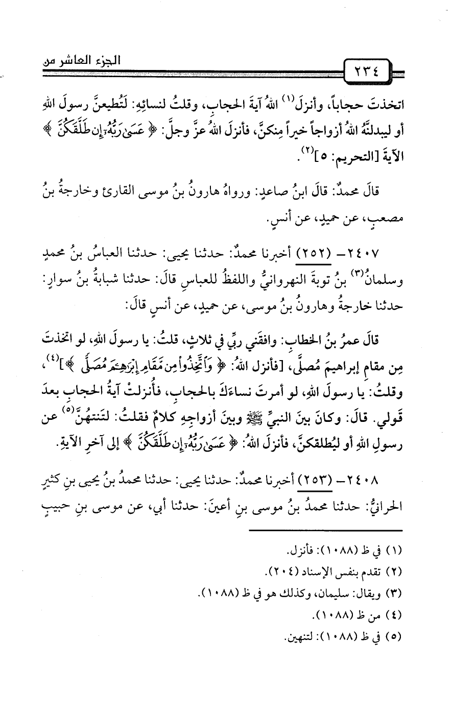 2407- (252) أخبرنا محمدٌ: حدثنا يحيى: حدثنا العباسُ بنُ محمدٍ وسلمانُ (¬3) بنُ توبةَ النهروانيُّ واللفظُ للعباسِ قالَ: حدثنا شبابةُ بنُ سوارٍ: حدثنا خارجةُ وهارونُ بنُ موسى، عن حميدٍ، عن أنسٍ قالَ: