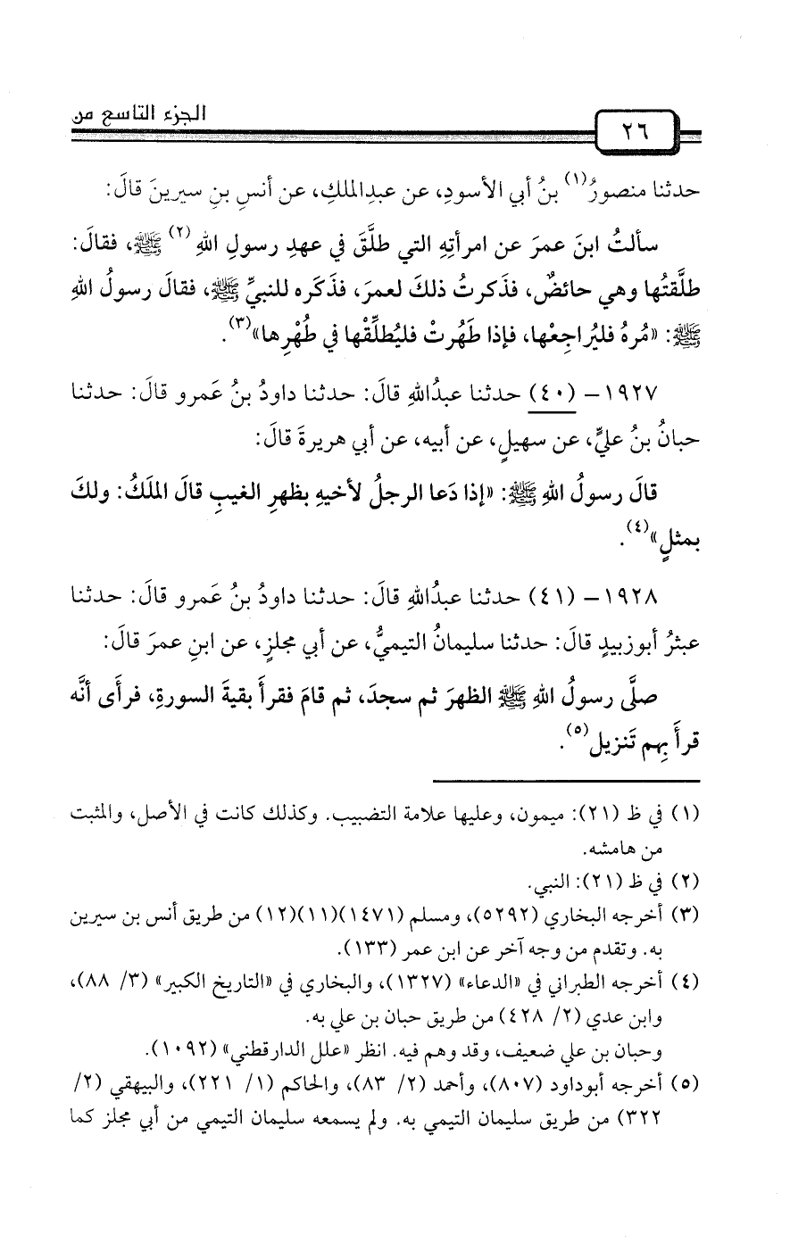 1928- (41) حدثنا عبدُاللهِ قالَ: حدثنا داودُ بنُ عَمرو قالَ: حدثنا عبثرُ أبوزبيدٍ قالَ: حدثنا سليمانُ التيميُّ، عن أبي مجلزٍ، عن ابنِ عمرَ قالَ: