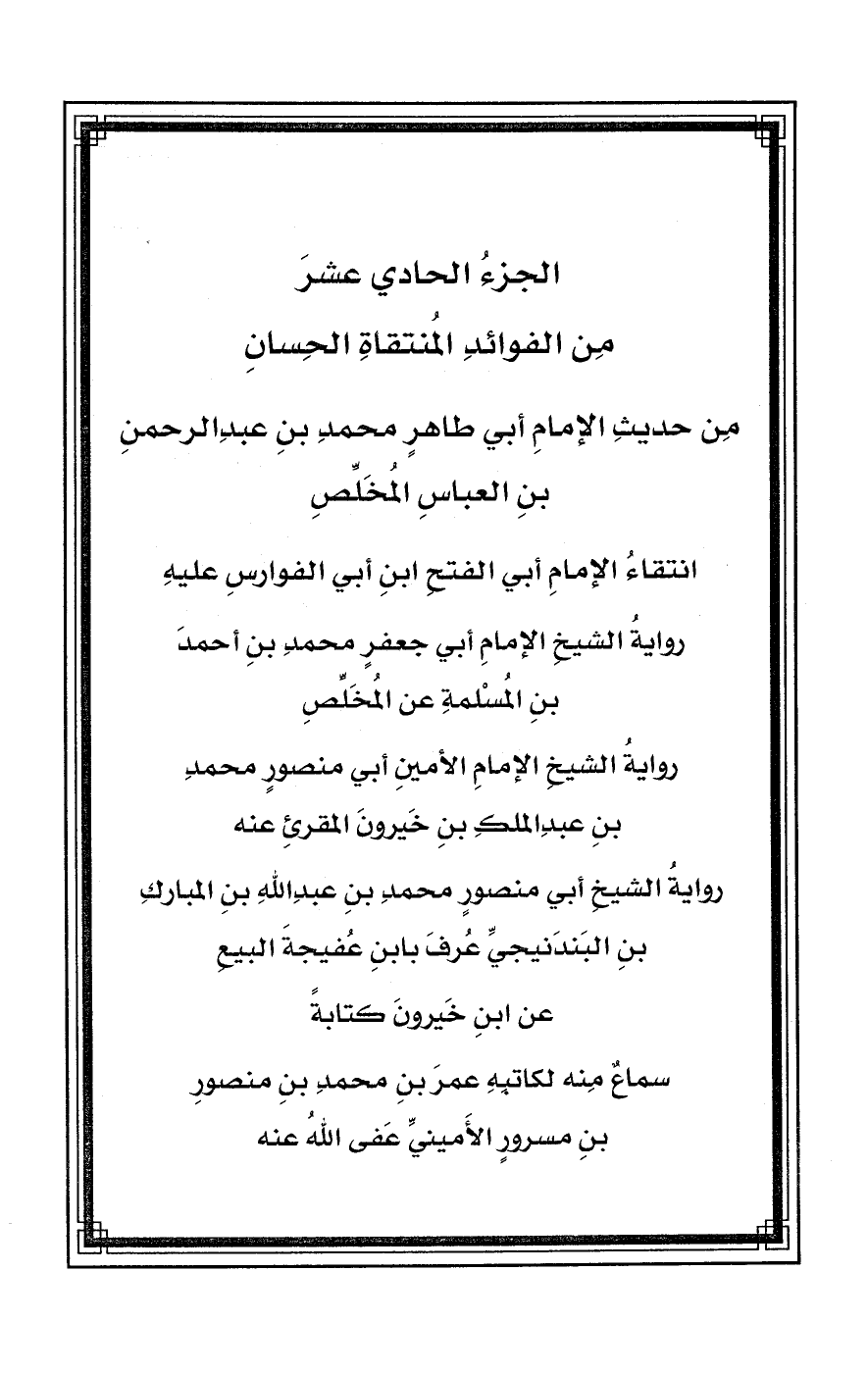 مِن حديثِ الإمامِ أبي طاهرٍ محمدِ بنِ عبدِالرحمنِ بنِ العباسِ المُخَلِّصِ