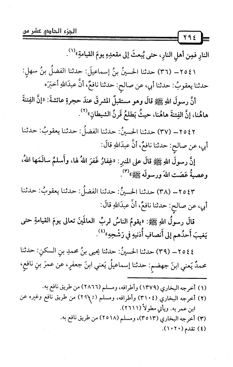 2542- (37) حدثنا الحسينُ: حدثنا الفضلُ: حدثنا يعقوبُ: حدثنا أبي، عن صالحٍ: حدثنا نافعٌ، أنَّ عبدَاللهِ قالَ: