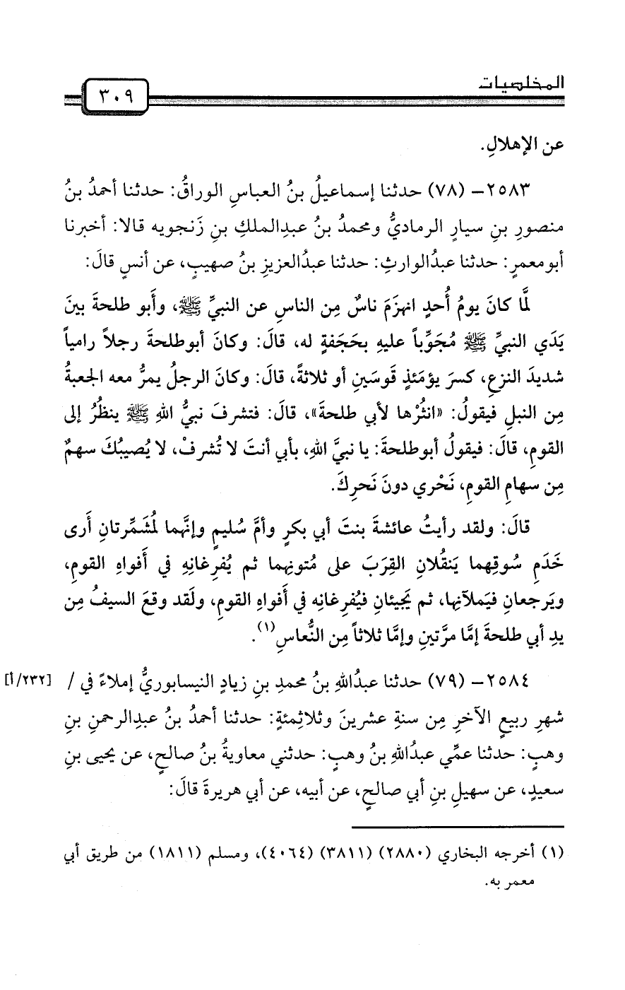 2583- (78) حدثنا إسماعيلُ بنُ العباسِ الوراقُ: حدثنا أحمدُ بنُ منصورِ بنِ سيارٍ الرماديُّ ومحمدُ بنُ عبدِالملكِ بنِ زَنجويه قالا: أخبرنا أبومعمرٍ: حدثنا عبدُالوارثِ: حدثنا عبدُالعزيزِ بنُ صهيبٍ، عن أنسٍ قالَ: