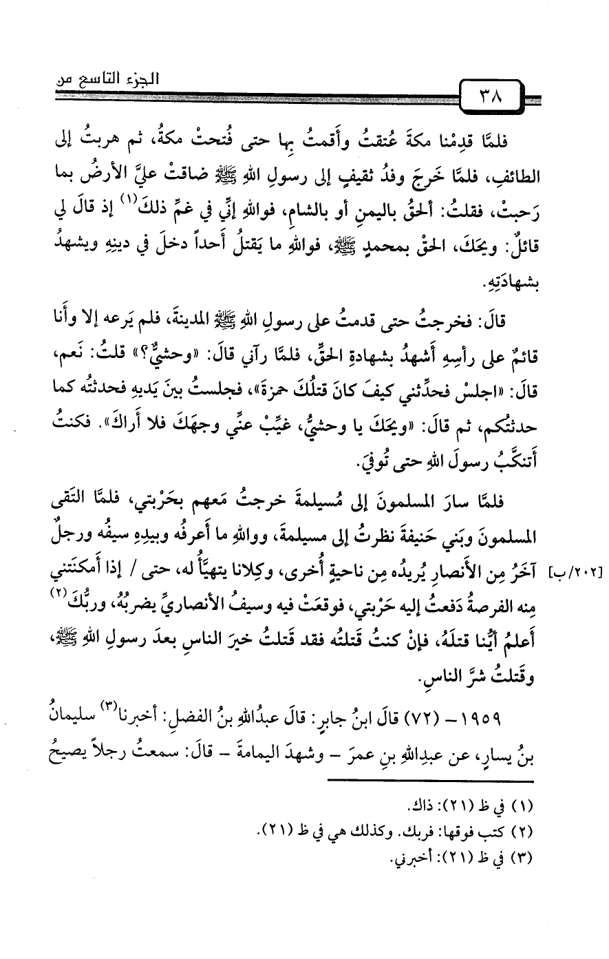 1959- (72) قالَ ابنُ جابرٍ: قالَ عبدُاللهِ بنُ الفضلِ: أخبرنا (¬3) سليمانُ بنُ يسارٍ، عن عبدِاللهِ بنِ عمرَ - وشهدَ اليمامةَ - قالَ: سمعتُ رجلاً يصيحُ