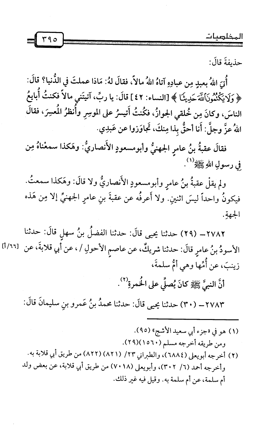 ولم يقلْ عقبةُ بنُ عامرٍ وأبومسعودٍ الأَنصاريُّ ولا قالَ: وهَكذا سمعتُ. فيكونُ واحداً ليسَ اثنينِ. ولا أَعرفُه عن عقبةَ بنِ عامرٍ الجهنيِّ إلا مِن هَذه الجهةِ.