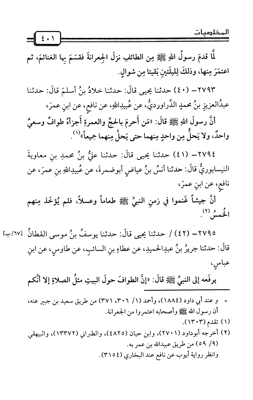 2793- (40) حدثنا يحيى قالَ: حدثنا خلادُ بنُ أسلمَ قالَ: حدثنا عبدُالعزيزِ بنُ محمدٍ الدَّراورديُّ، عن عُبيدِاللهِ، عن نافعٍ، عن ابنِ عمرَ،