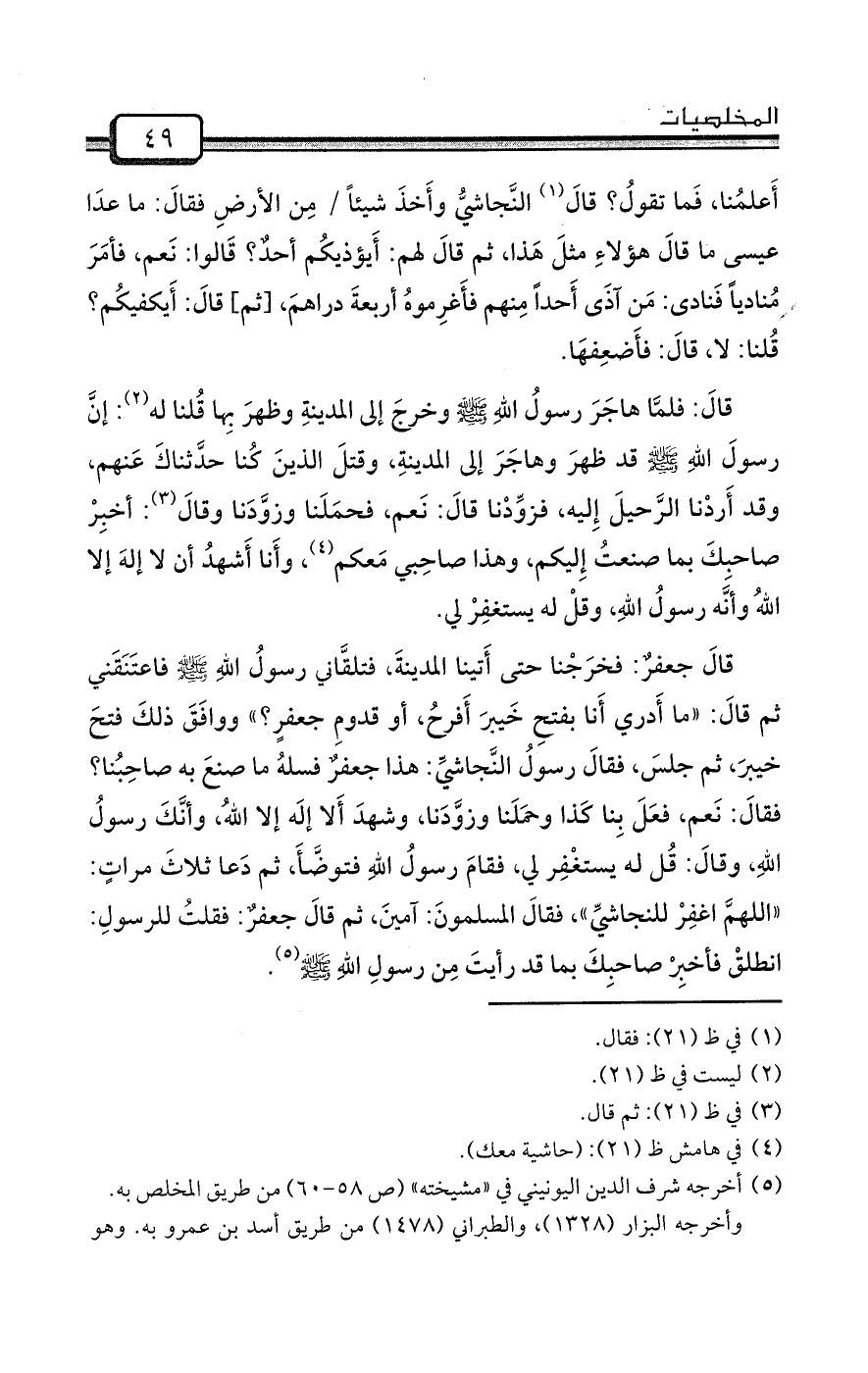 (¬5) أخرجه شرف الدين اليونيني في «مشيخته» (ص 58-60) من طريق المخلص به.