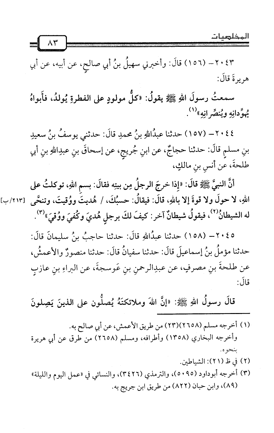 2043- (156) قالَ: وأخبرني سهيلُ بنُ أبي صالحٍ، عن أبيه، عن أبي هريرةَ قالَ: