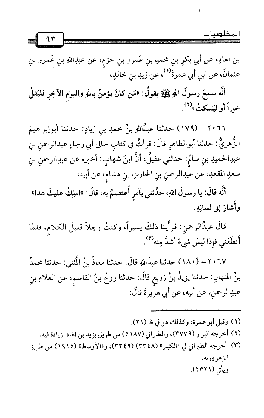 أنَّه قالَ: يا رسولَ اللهِ، حدِّثني بأمرٍ أَعتصمُ به، قالَ: «املِكْ عليكَ هذا» . وأَشارَ إلى لسانِهِ.