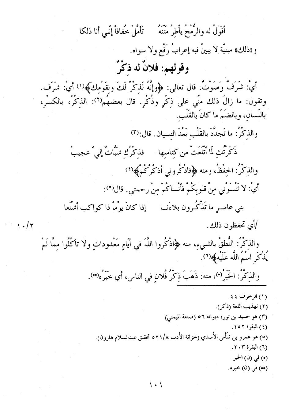 والذِكْرُ: النطق بالشيء، منه {وَاذْكُرُوا اللَّهَ فِي أَيَّامٍ مَعْدُودَاتٍ} و {لا تَاكُلُوا مِمَّا لَمْ يُذْكَرْ اسْمُ اللَّهِ عَلَيْهِ}.