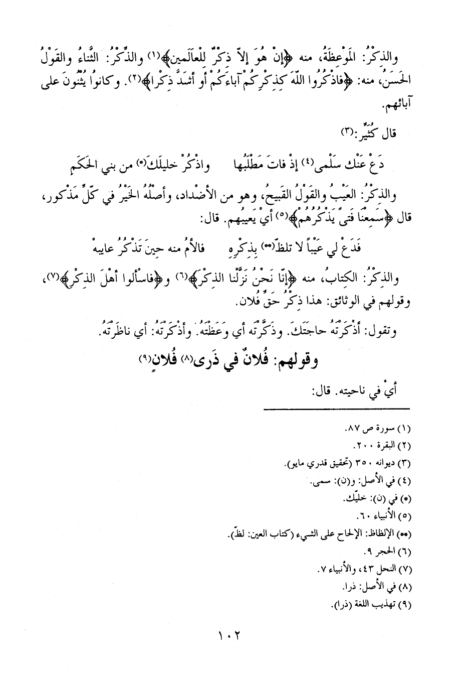 والذكر: الموعظة، منه {إِنْ هُوَ إِلاَّ ذِكْرٌ لِلْعَالَمِينَ} والذكر: الثناء والقول الحسن، منه: {فَاذْكُرُوا اللَّهَ كَذِكْرِكُمْ آبَاءَكُمْ أَوْ أَشَدَّ ذِكْراً}. وكانوا يثنون على آبائهم.