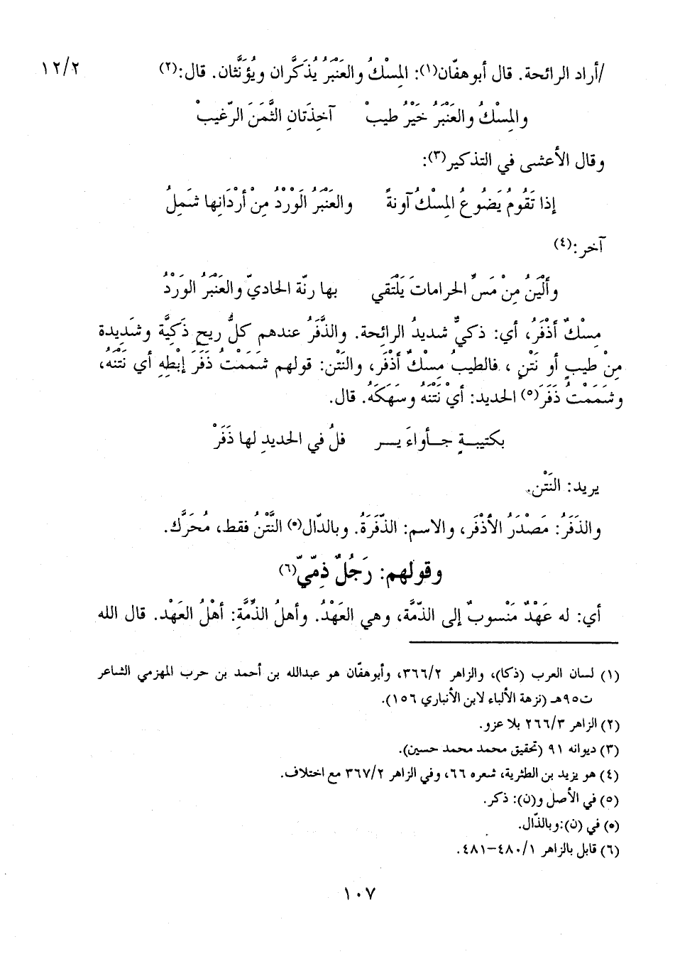 2/ 12 أراد الرائحة. قال أبو هفان: المسكُ والعنبرُ يذكران ويؤنثان. قال: