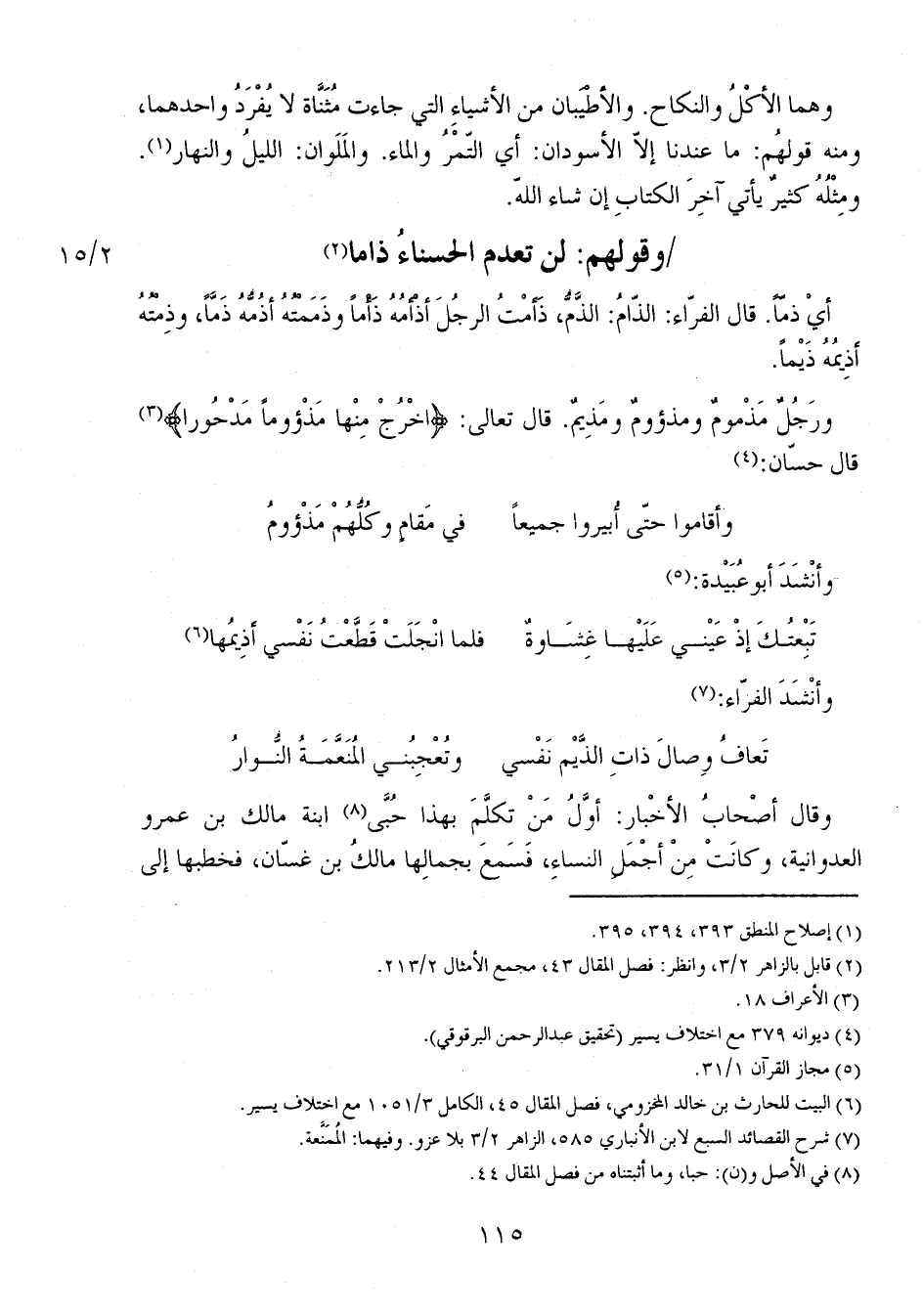 2/ 15 وقولهم: لن تعدم الحسناء ذاما