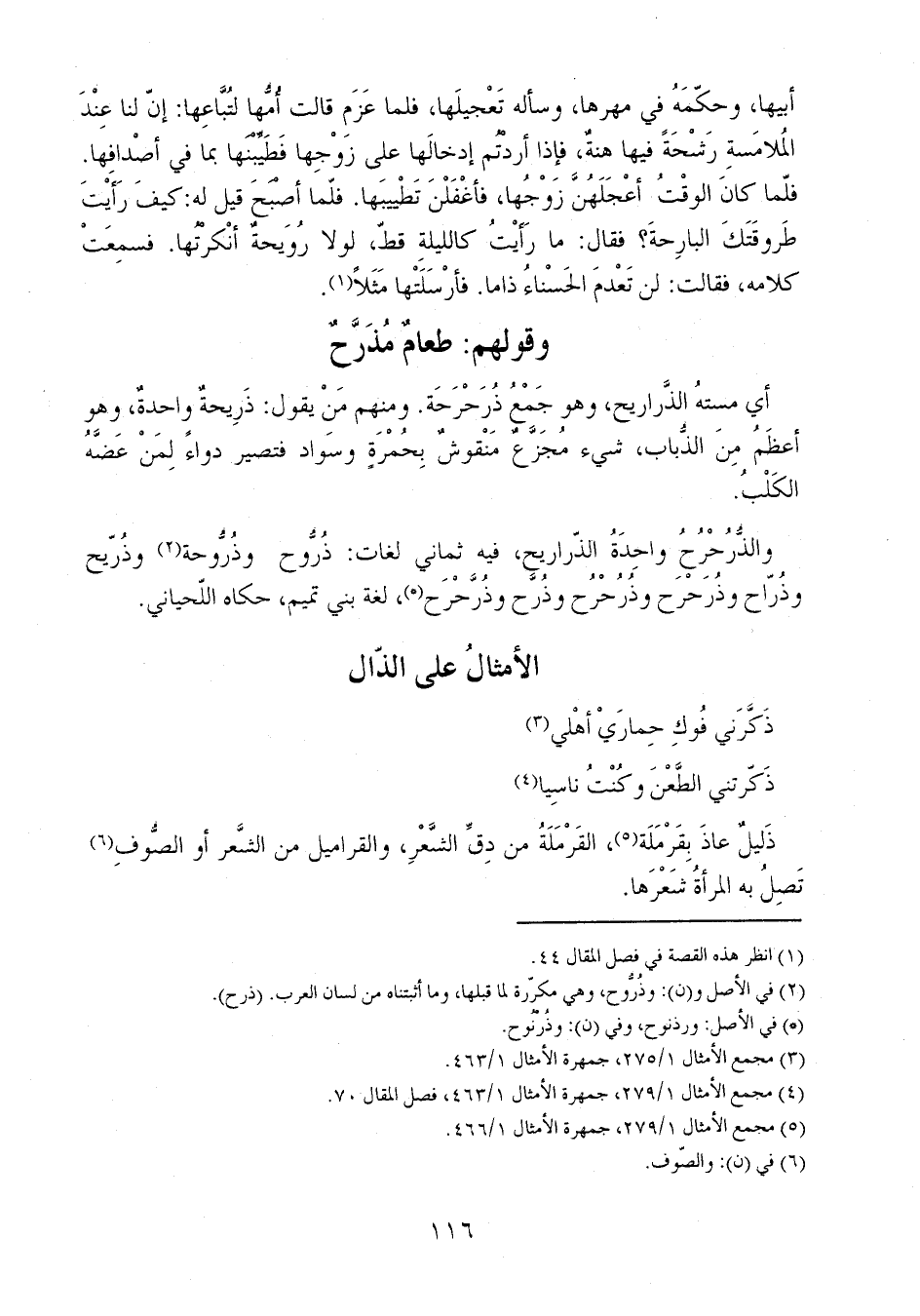 أبيها، وحكمه في مهرها، وسأله تعجيلها، فلما عزم قالت أمها لتباعها: إن لنا عند الملامسة رشحة فيها هنة، فإذا أردتم إدخالها على زوجها فطيبنها بما في أصدافها. فلما كان الوقت أعجلهن زوجها، فأغفلن تطييبها. فلما أصبح قيل له: كيف رأيت طروقتك البارحة؟ قال: ما رأيت كالليلة قط، لولا رُويحةٌ أنكرتها. فسمعت كلامه، فقالت: لن تعدم الحسناء ذاما. فأرسلتها مثلاً.