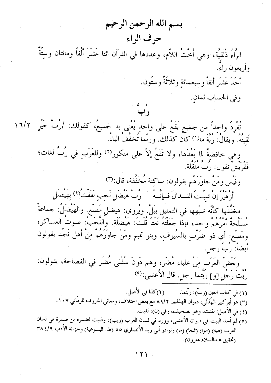 تُفْردُ واحداً من جميع يقع على واحد يعني به الجميع، كقولك:2/ 16 رُبَّ خيرٍ لقيته. ويقال: رُبَّةَ ما كان كذلك. وربما تخفف الباء.