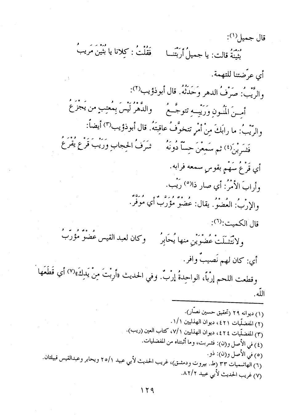 بثينة قالت: يا جميل أربتنا ... فقلتُ: كلانا يا بثين مريب