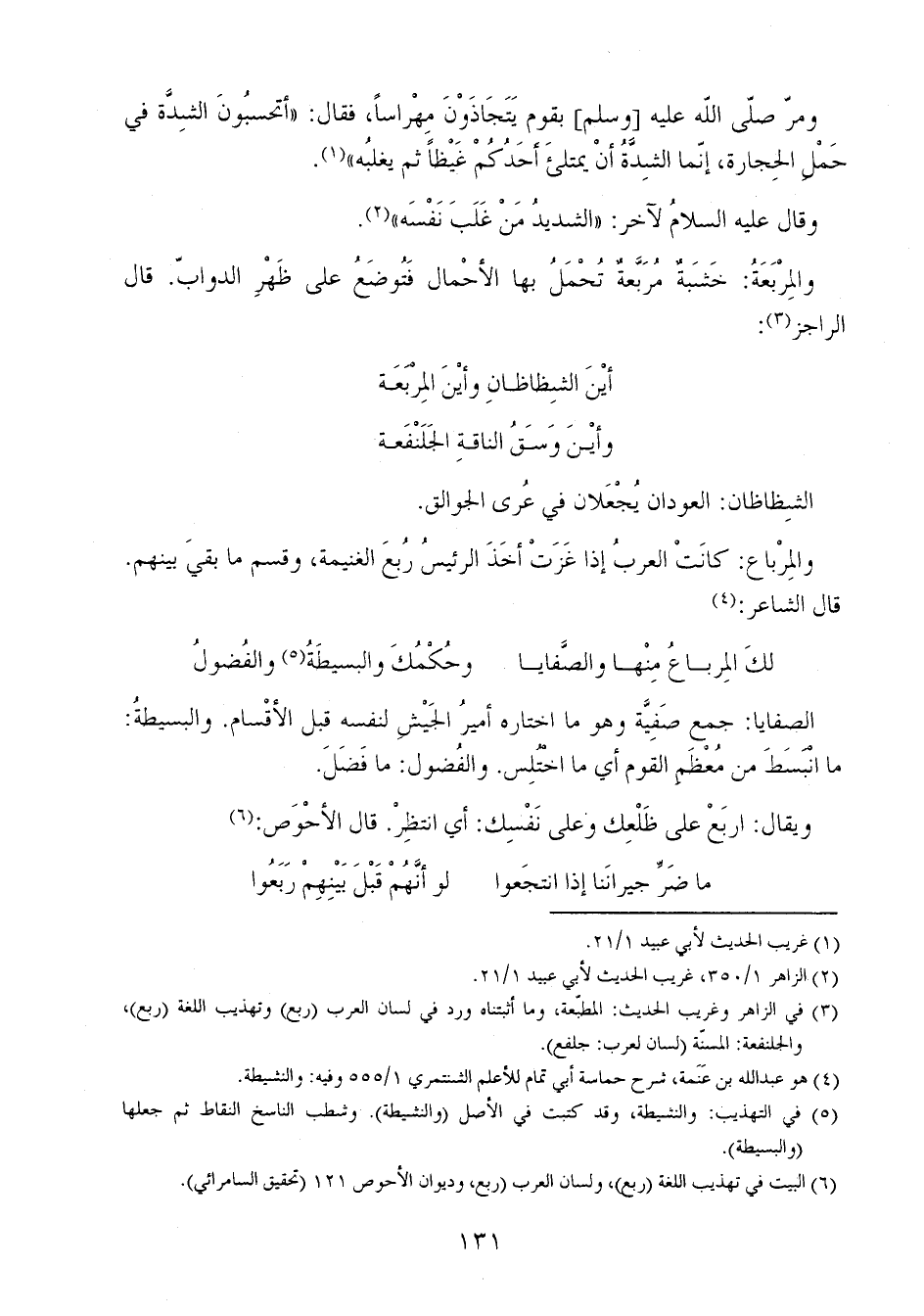 ومر صلى الله عليه [وسلم] بقوم يتجاذون مهراساً، فقال: "أتحسبون الشدة في حمْلِ الحجارة، إنما الشدة أن يمتلئ أحدكم غيظاً ثم يغلبه".
