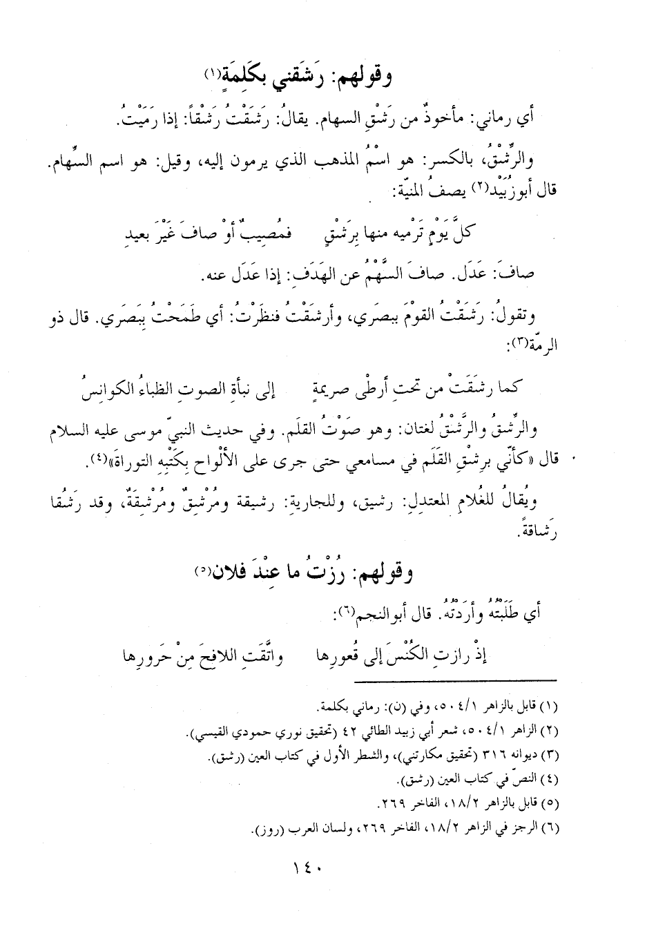 وتقول: رشَقْتُ القومَ ببصري، وأرشَقْتُ فنظرتُ: أي طمحْتُ ببصري. قال ذو الرمة: