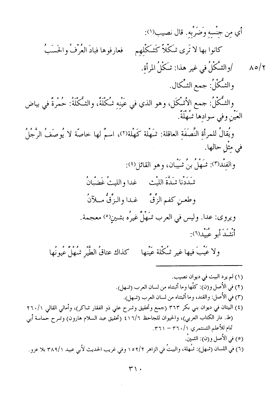 2/ 85 والشكلُ في غير هذا: شكلُ المرأة.