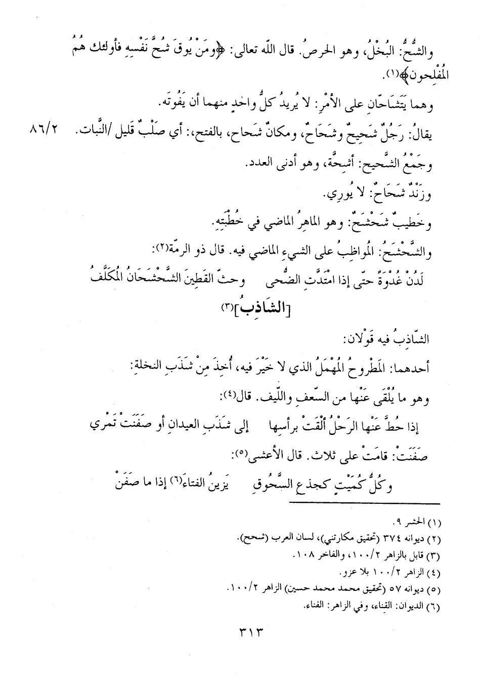 يقال: رجلٌ شحيحٌ وشحاحٌ، ومكانٌ شحاح، بالفتح: أي صلبٌ قليل 2/ 86 النبات.