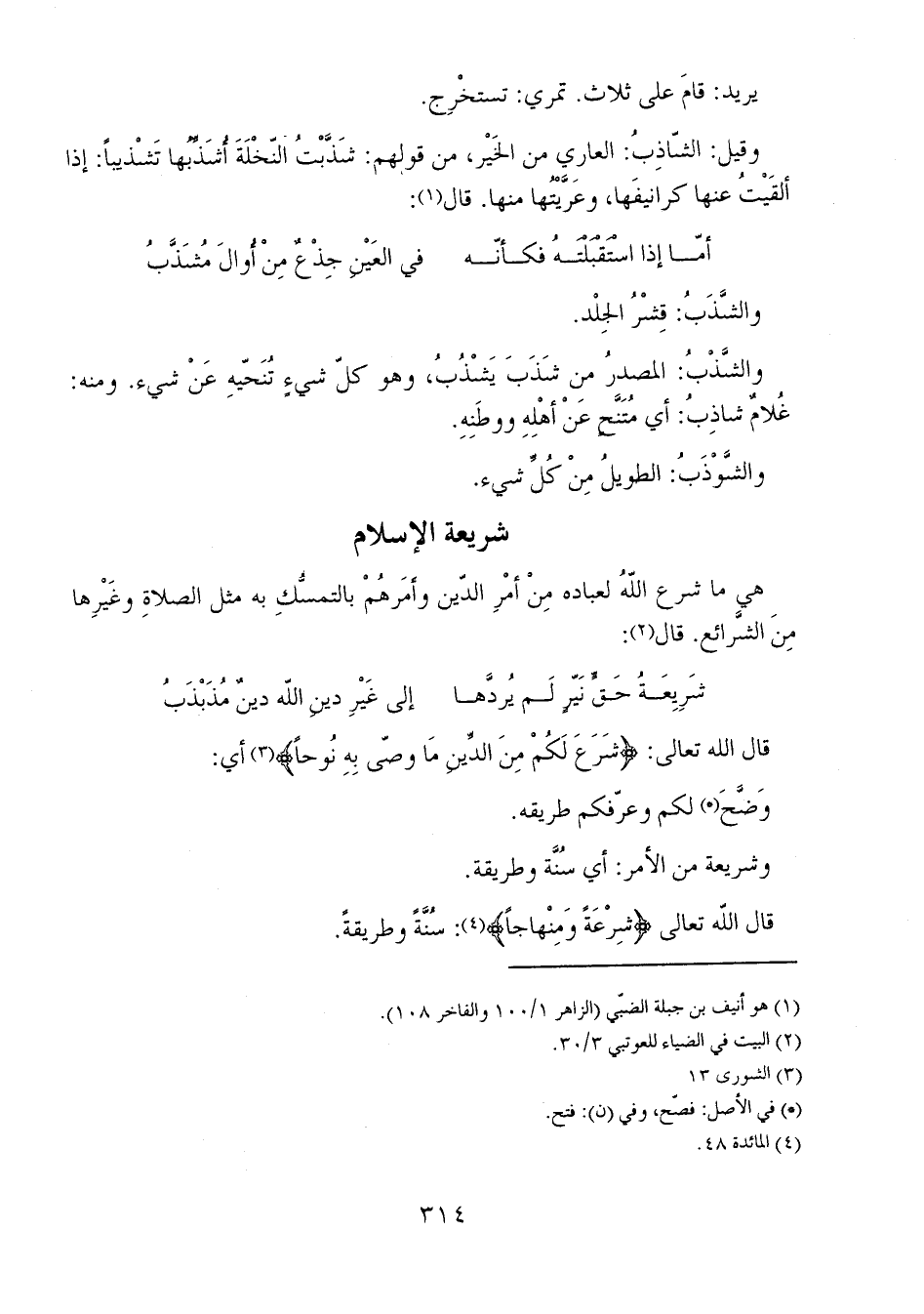 قال الله تعالى {شِرْعَةً وَمِنْهَاجاً}: سنةً وطريقةً.