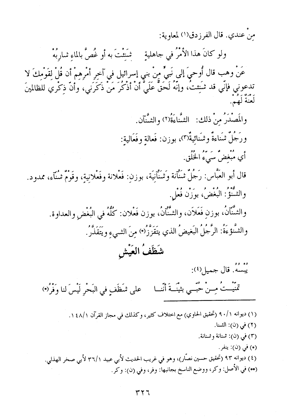 قال أبو العباس: رجلٌ شَنْآنة وشَنْآنِيَة، بوزنِ: فَعْلانة وفَعْلانِيةٍ، وقَوْمٌ شُنَآء، ممدود.