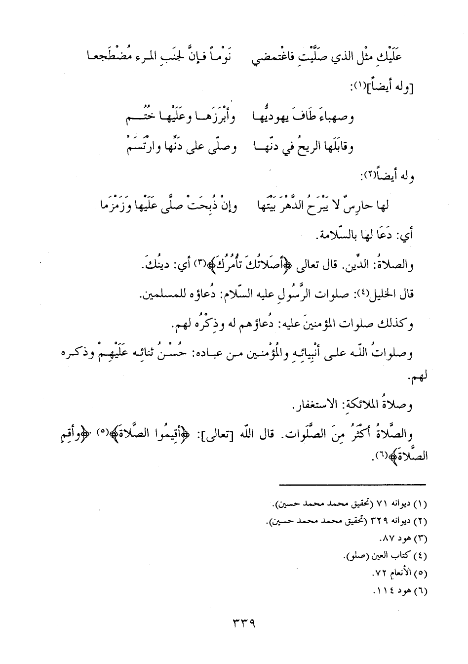 وألِفُ الصَّلاةِ واو، ولأنّ جَمْعَها الصَّلَوات، والتَّثْنِية: صَلَوان.