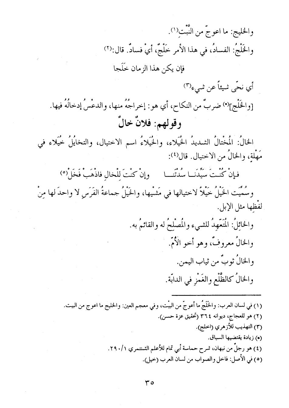 الخالُ: المختالُ الشديد الخيلاء، والخُيَلاءُ اسم الاختيال، والتخايُلُ خُيَلاء في مهْلةٍ، والخالُ من الاختيال. قال: