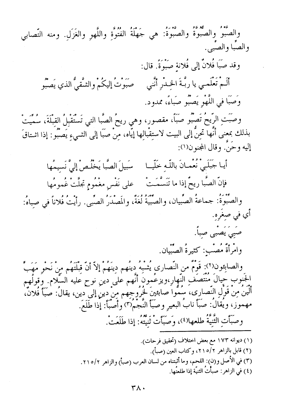 وكانت قريش تُسمي النبي صلى الله عليه [وسلم] صابئاً، ويسمُّونَ أصحابَهُ كذلك، لخروجهم من دين إلى دين.