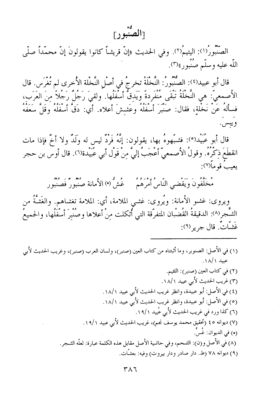 والصُّنْبورُ في غير هذا: قصبةُ الإداوة من حديدٍ أو رصاصٍ أو غيره.