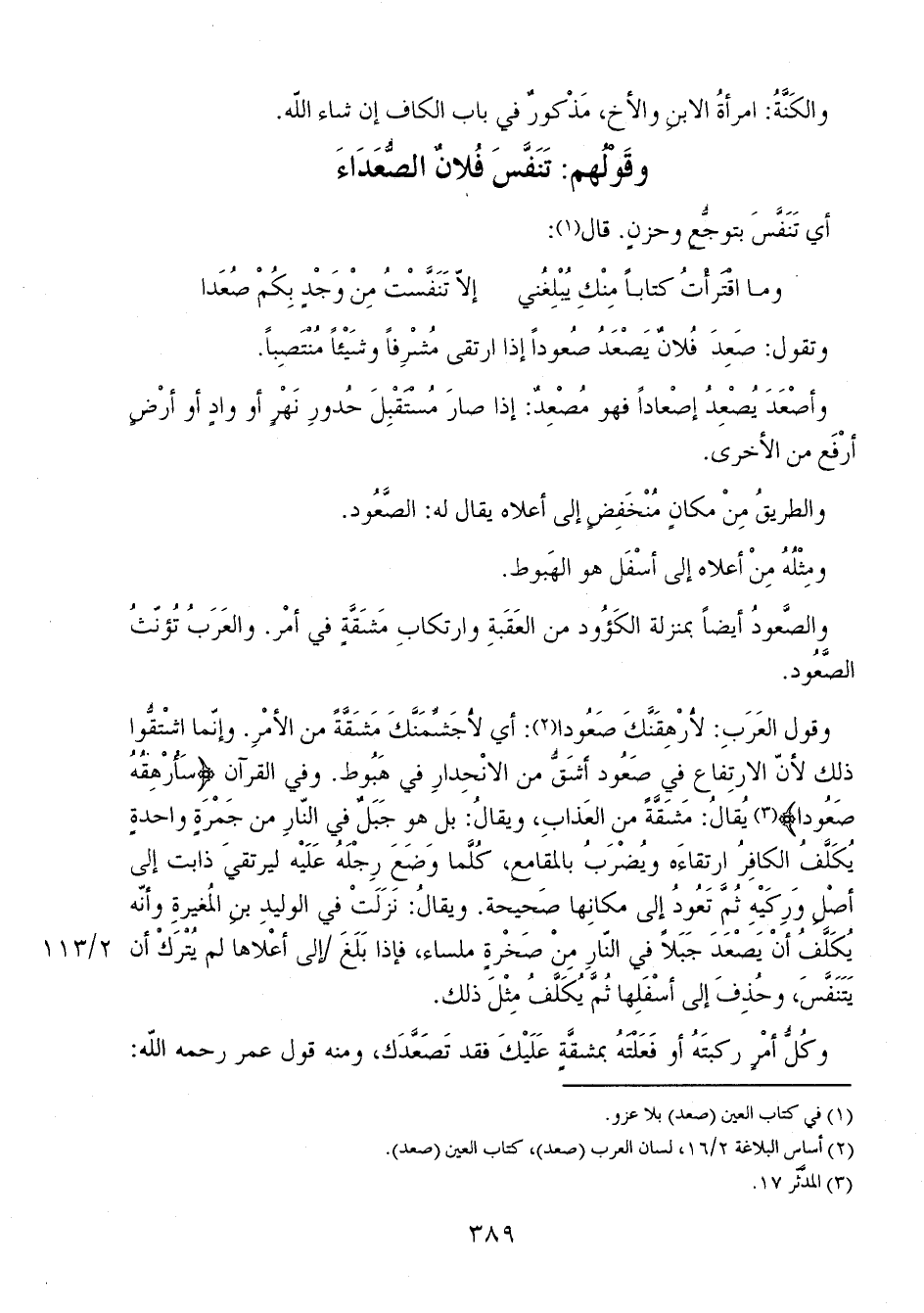 ويقال: وقعَ القومُ في صعود، وهي العَقَبةُ المنكَرَةُ الصَّعْبَةُ، وكذلك الكؤُود.