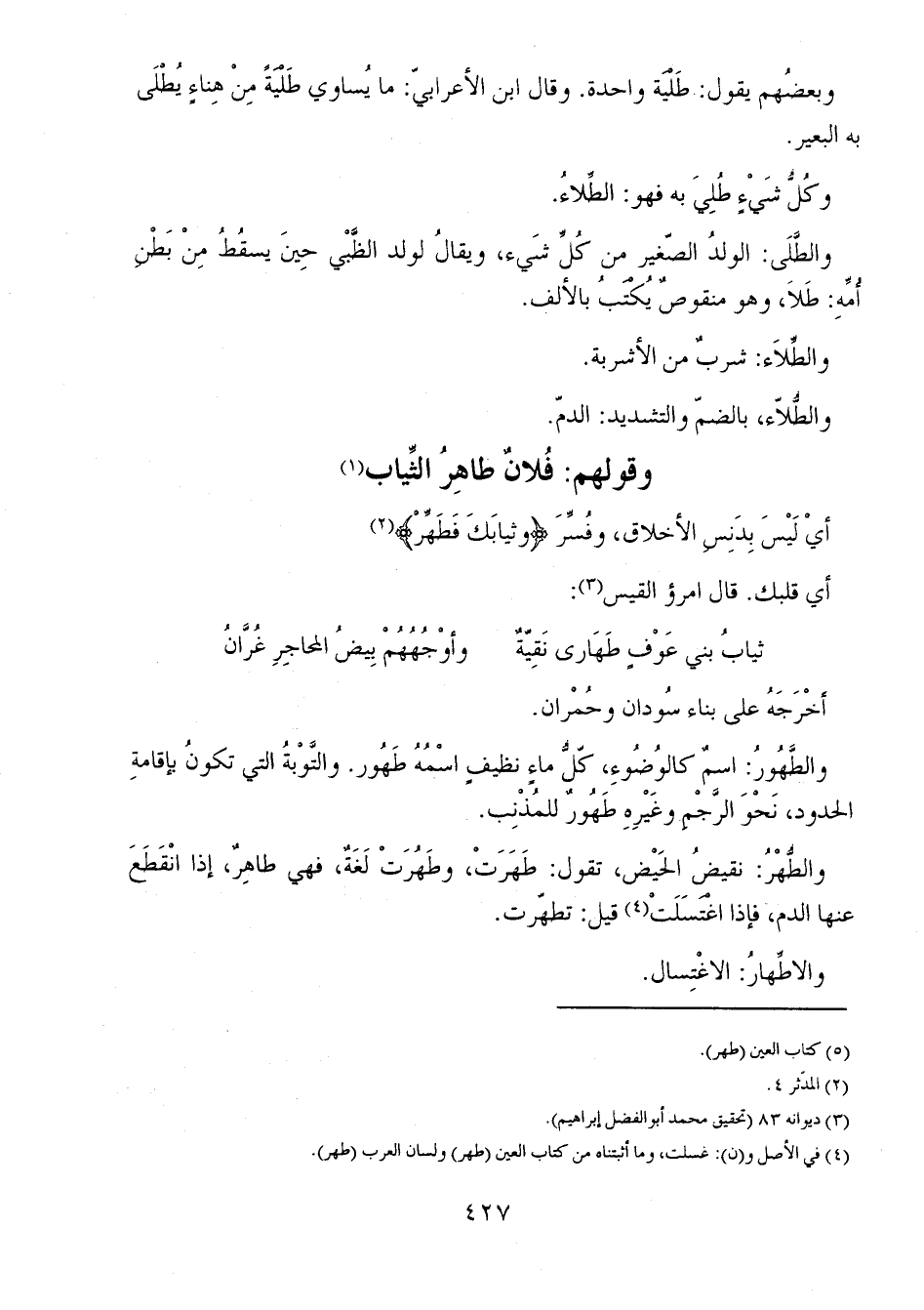 وقولهم: فلانٌ طاهِرُ الثِّياب