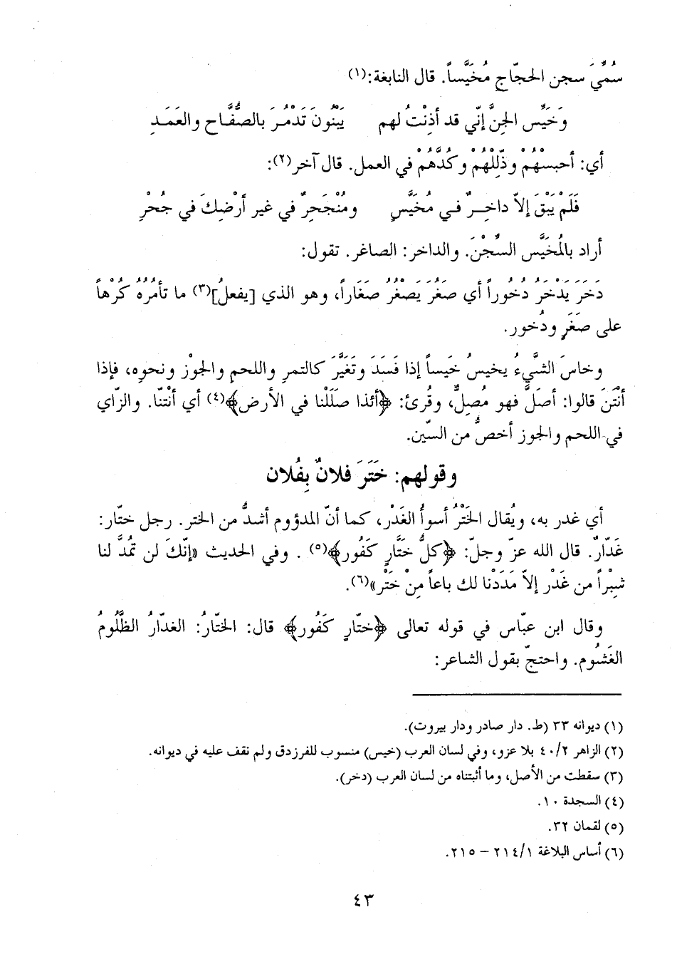 وقال ابن عباس في قوله تعالى: {خَتَّارٍ كَفُورٍ} قال: الختارُ: الغدارُ الظلومُ الغشوم. واحتج بقول الشاعر: