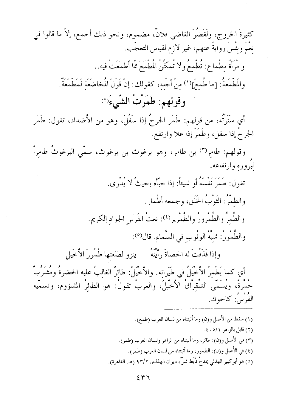 أي كما يَطْمِرُ الأخْيَلُ في طيرانِه. والأخْيَلُ: طائرٌ الغالِبُ عليه الخضرةُ ومُشَرَّبٌ حُمْرةٌ، ويُسَمّى الشِّقِرَّاقُ الأخْيَلَ، والعربُ تقولُ: هو الطائِرُ المشؤوم، وتسمّيه الفُرْسُ: كاحوك.