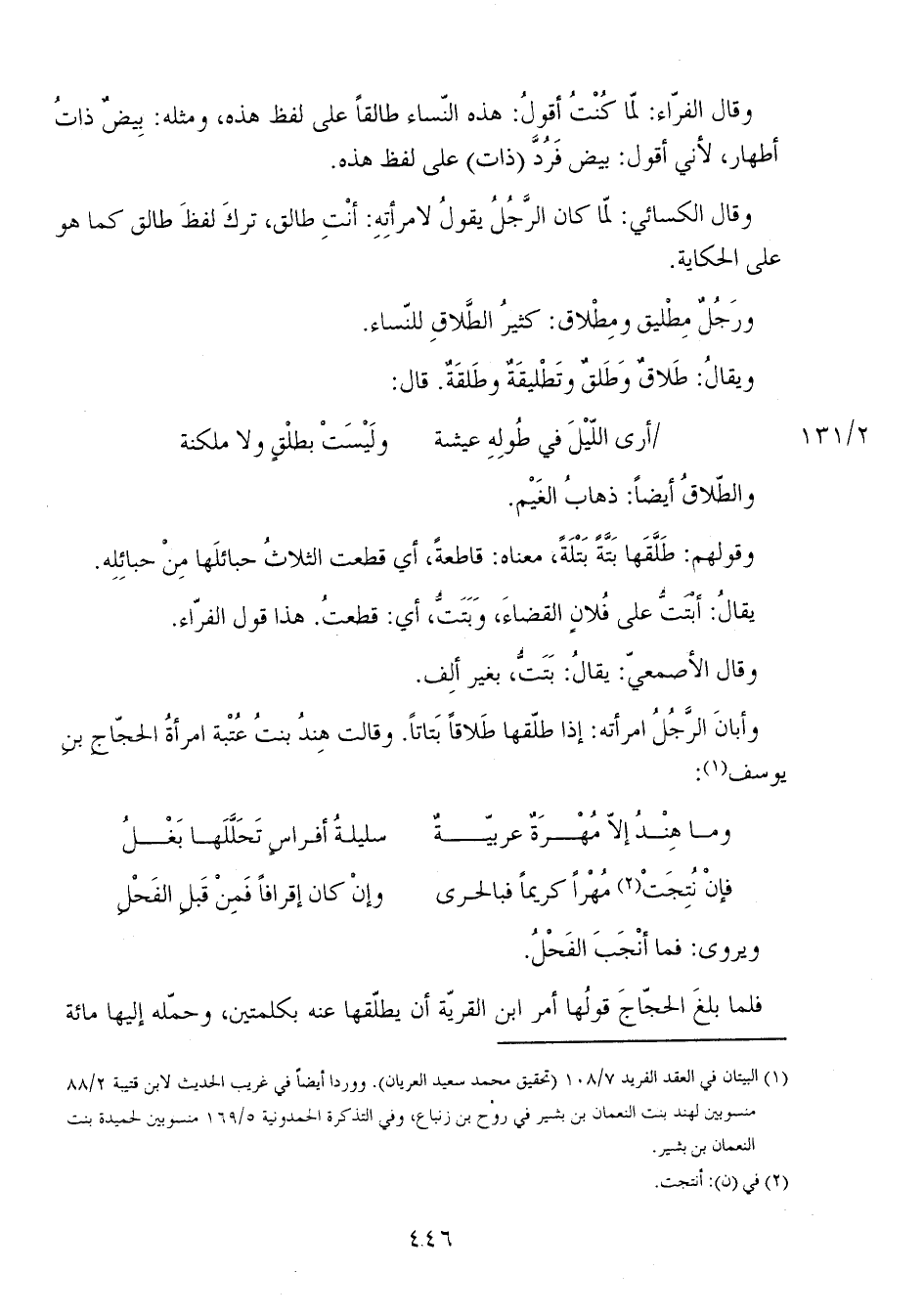 2/ 131 أرى الليلَ في طُوله عيشة ... وليستْ بطلقٍ ولا ملكنة