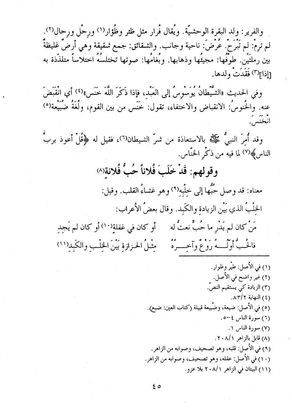 والفرير: ولد البقر الوحشية. ويُقال فُرار مثل ظئر وظُؤار ورِحْل ورِحال. لم ترم: لم تبرح. عُرْضَ: ناحية وجانب. والشقائق: جمع شقيقة وهي أرض غليظة بين رملتين. طوفها: مجيئها وذهابها. وبُغامها: صوتها تختلسه اختلاساً متلذذة به [إذا] فقدت ولدها.