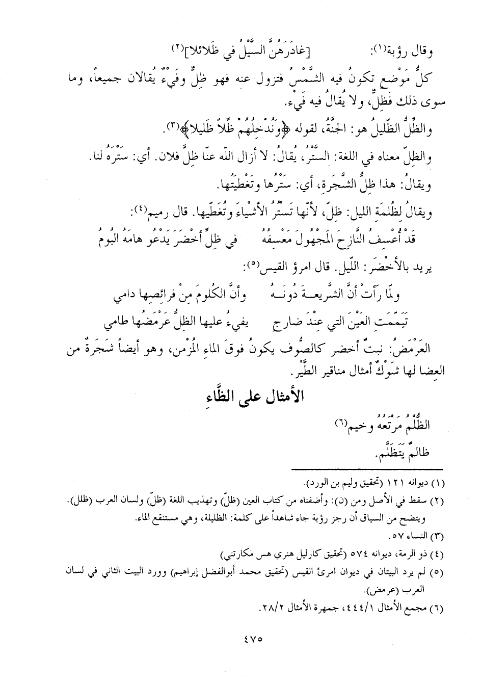 وقال رؤبة: [غادَرَهُنَّ السَّيْلُ في ظَلائلا]
