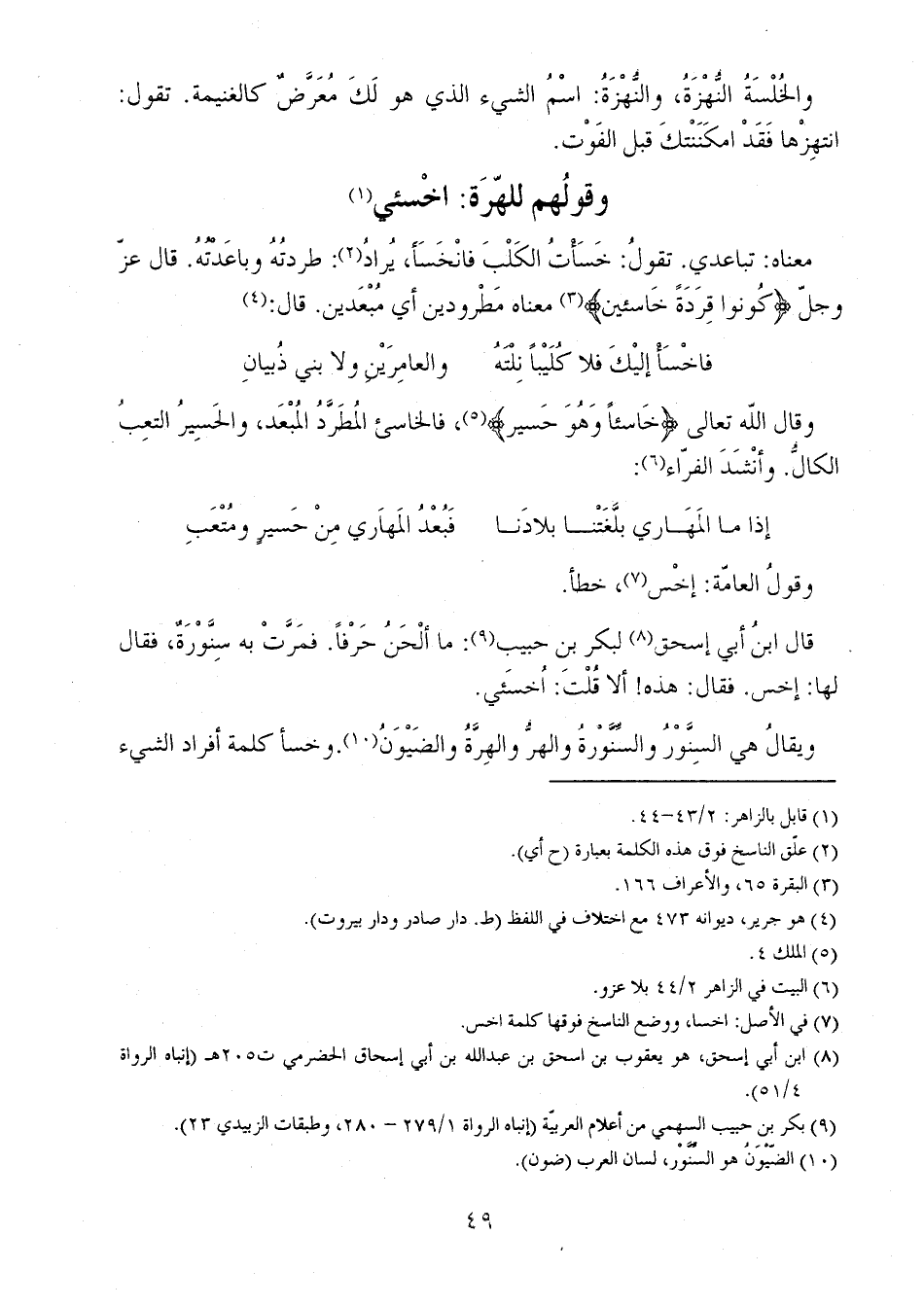 ويقال هي السِنَّوْرُ والسَنَّوْرةُ والهرُّ والهرةُ والضَيْوَنُ. وخسأ كلمة أفراد الشيء