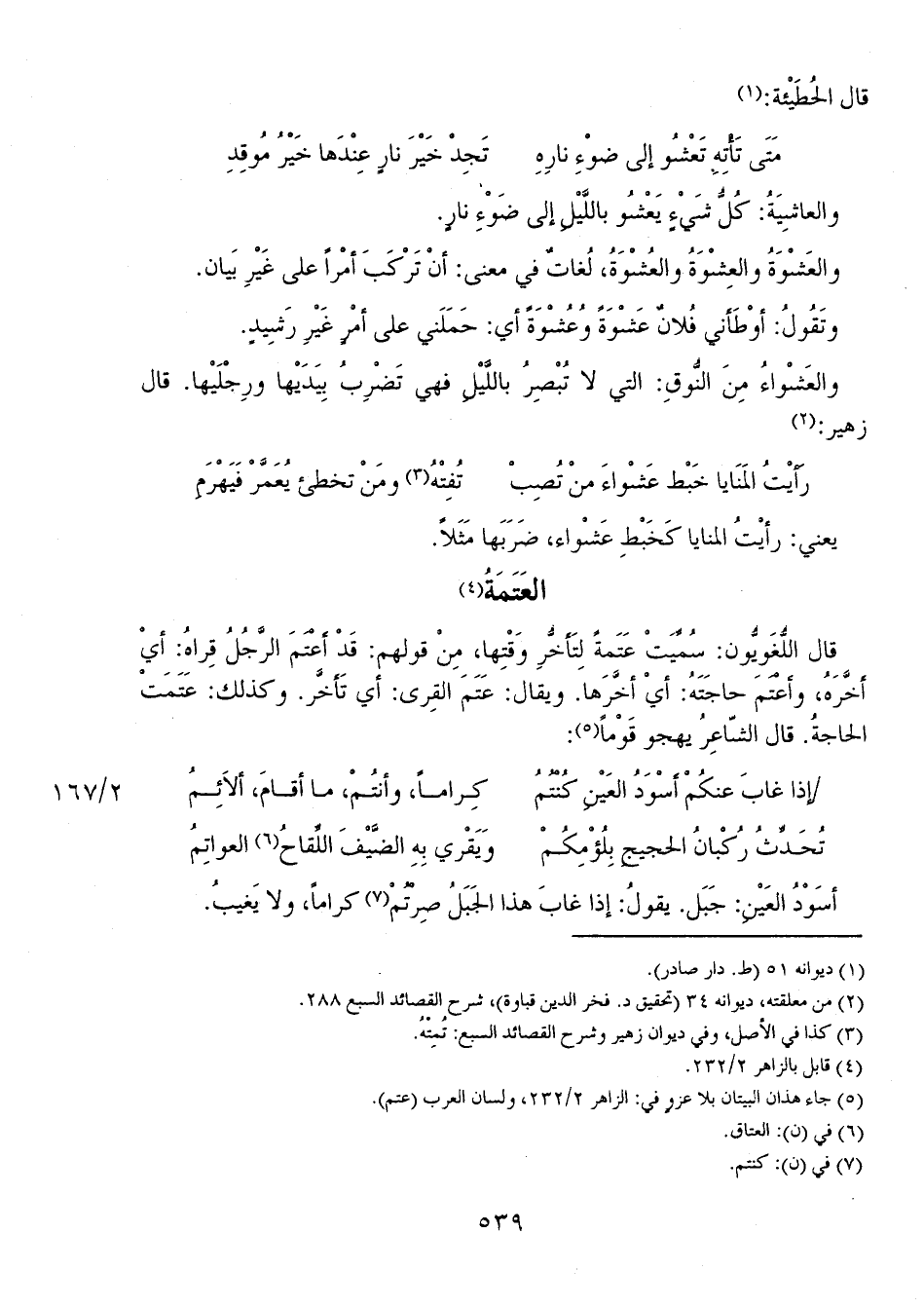 2/ 167 إذا غاب عنكم أسودُ العين كنتمُ ... كراماً، وأنتمْ، ما أقام، ألائِمُ