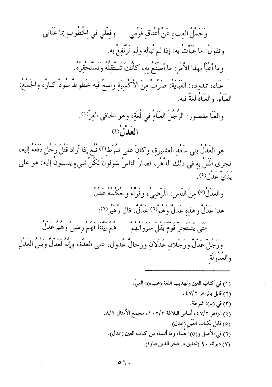 ورجُلٌ عَدْلٌ ورَجُلانِ عَدْلانِ ورجالٌ عُدول، على العدّة، وإنَّهُ لَعَدْلٌ وَبيِّنُ العَدْلِ والعُدُولَةِ.