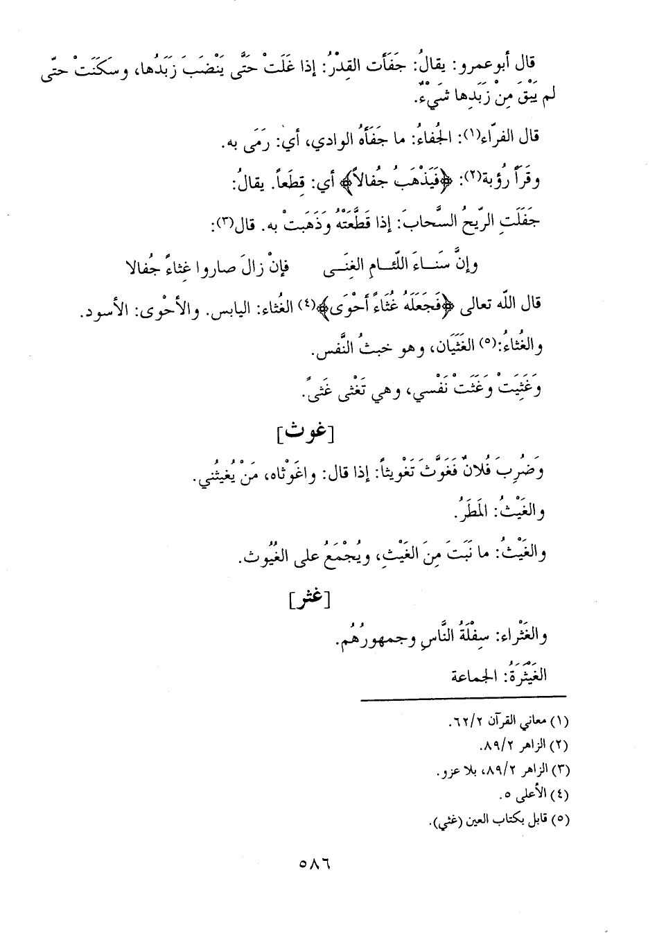 قال الله تعالى {فَجَعَلَهُ غُثَاءً أَحْوَى} الغُثاء: اليابس. والأحْوى: الأسود.