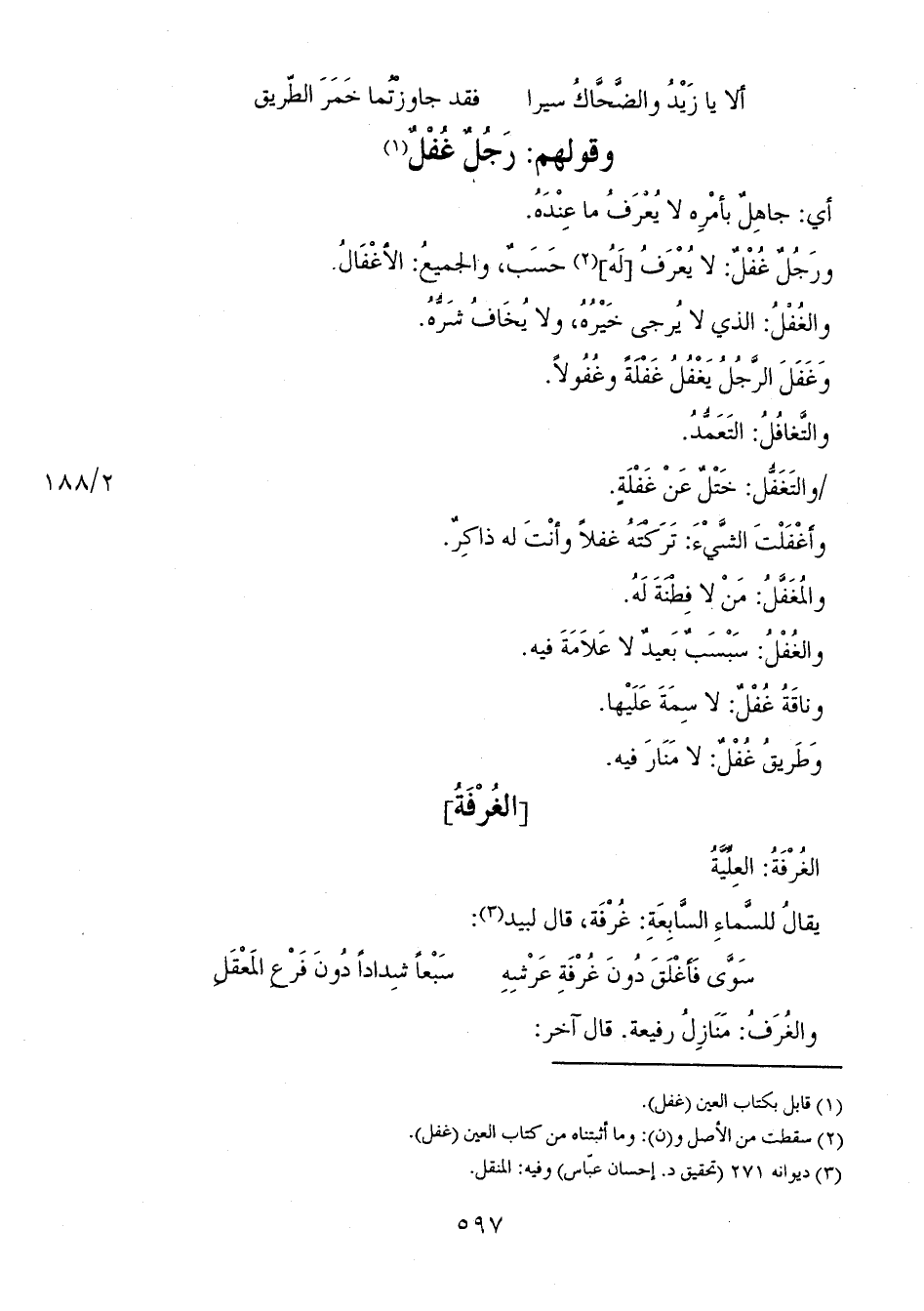2/ 188 والتَغَفُّل: خَتْلٌ عَنْ غَفْلَةٍ.