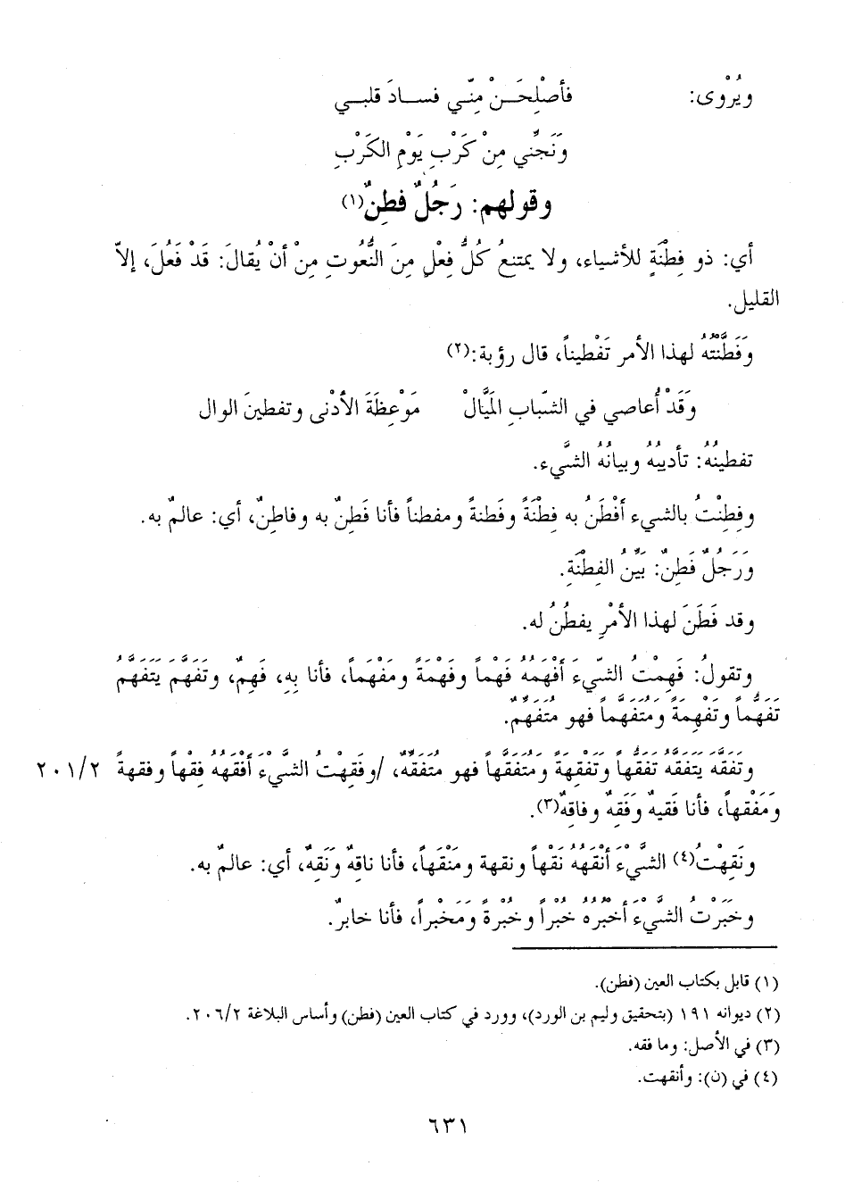 ورَجُلٌ فَطِنٌ: بَيِّنُ الفِطْنَةِ.