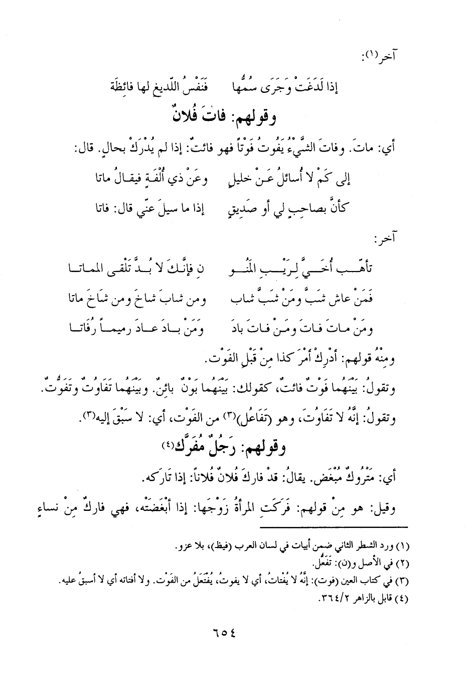 وقولهم: فاتَ فُلانٌ