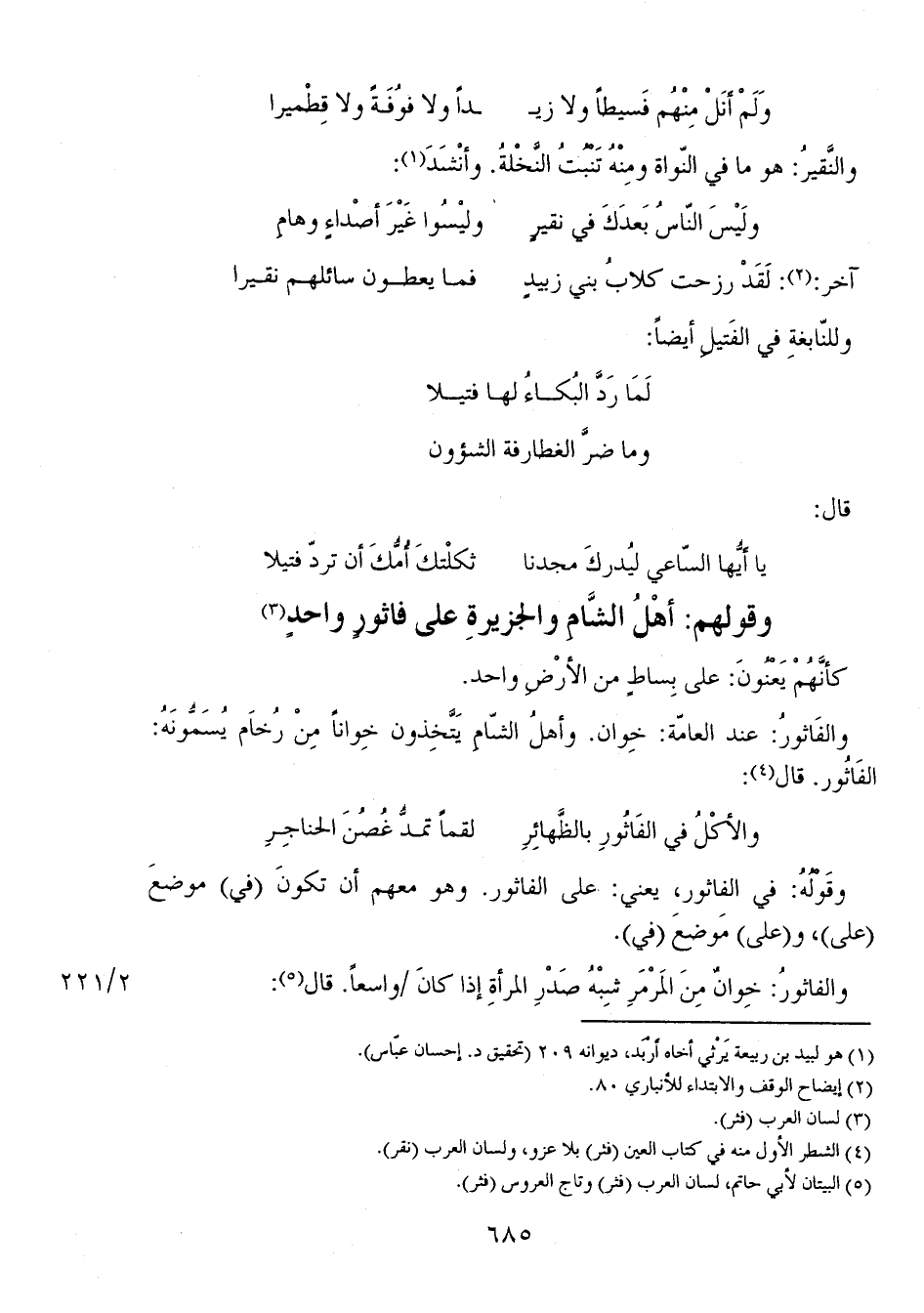 وقولهُ: في الفاثور، يعني: على الفاثور. وهو معهم أن تكونَ (في) موضعَ (على)، و (على) مَوضعَ (في).