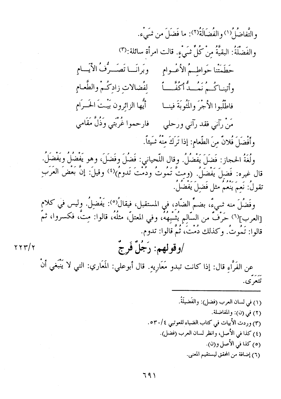 2/ 223 وقولهم: رَجُلٌ فَرِجٌ