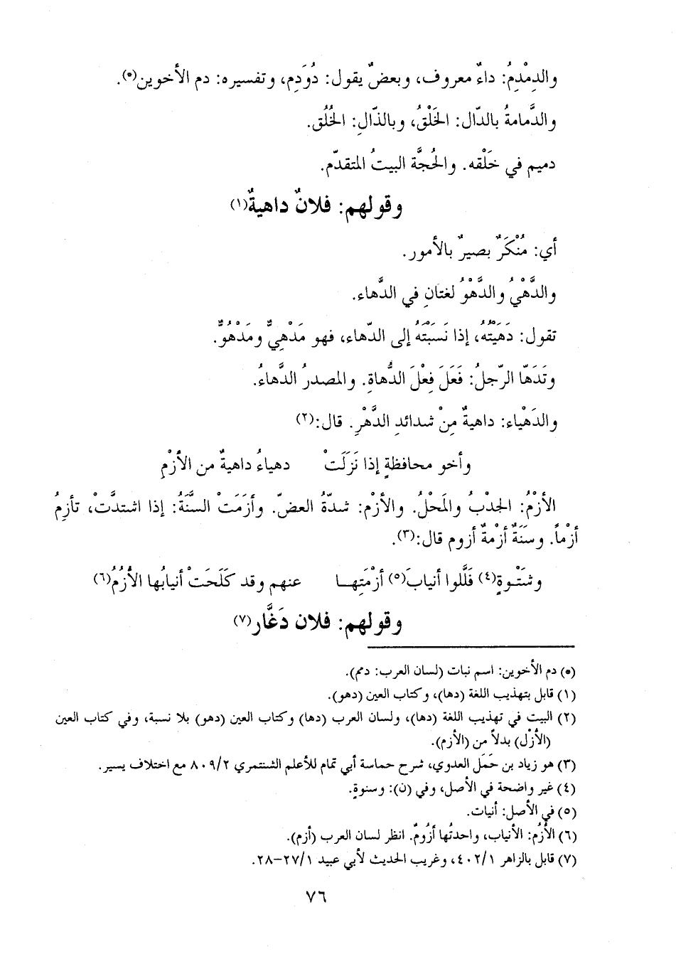 والدِمْدِمُ: داءٌ معروف، وبعضٌ يقول: دُوَدِم، وتفسيره: دم الأخوين.