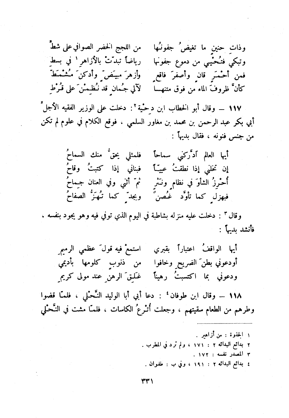 (4) بدائع البدائه 2: 191، وفي ب: طفوان.