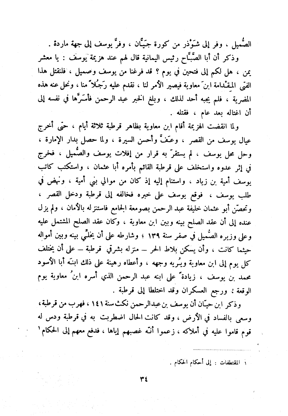 وذكر ابن حيان أن يوسف بن عبد الرحمن نكث سنة 141، فهرب من قرطبة، وسعى بالفساد في الأرض، وقد كانت الحال اضطربت به في قرطبة ودس له قوم قاموا عليه في أملاكه، زعموا أنه غصبهم إياها، فدفع معهم إلى الحكام (1)