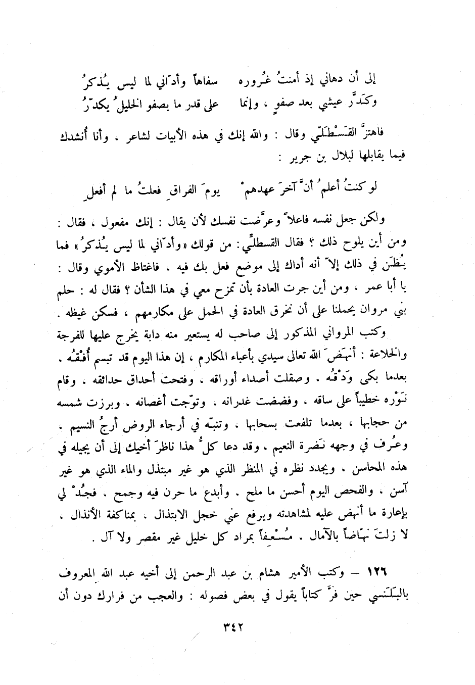 126 - وكتب الأمير هشام بن عبد الرحمن إلى أخيه عبد الله المعروف بالبلنسي حين فرّ كتاباً يقول في بعض فصوله: والعجب من فرارك دون أن