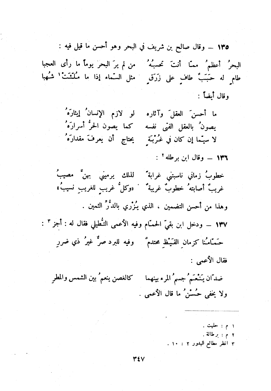 135 - وقال صالح بن شريف في البحر وهو أحسن ما قيل فيه: